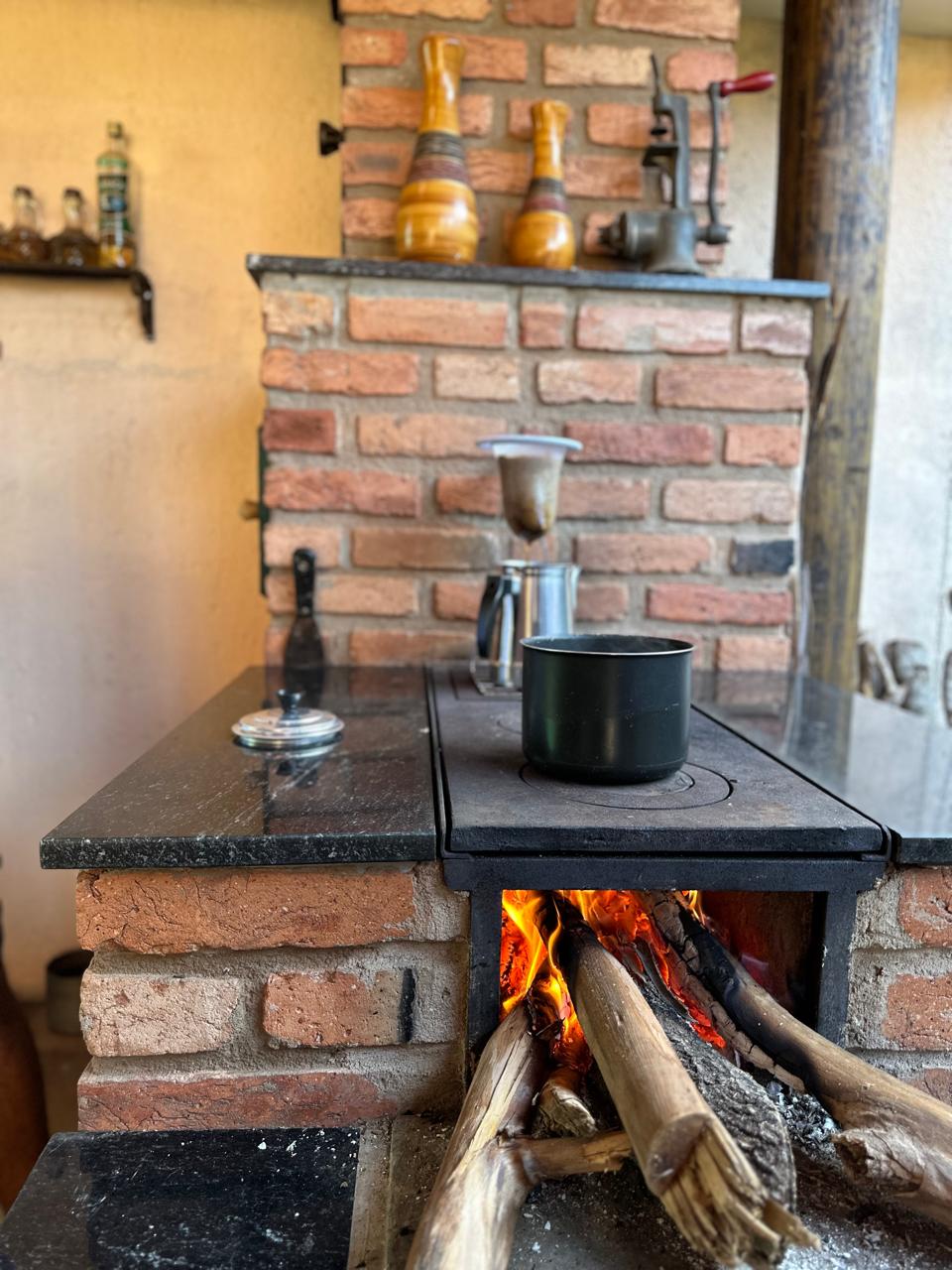 A visita guiada começa com um delicioso café da manhã caseiro feito no fogão a lenha.
