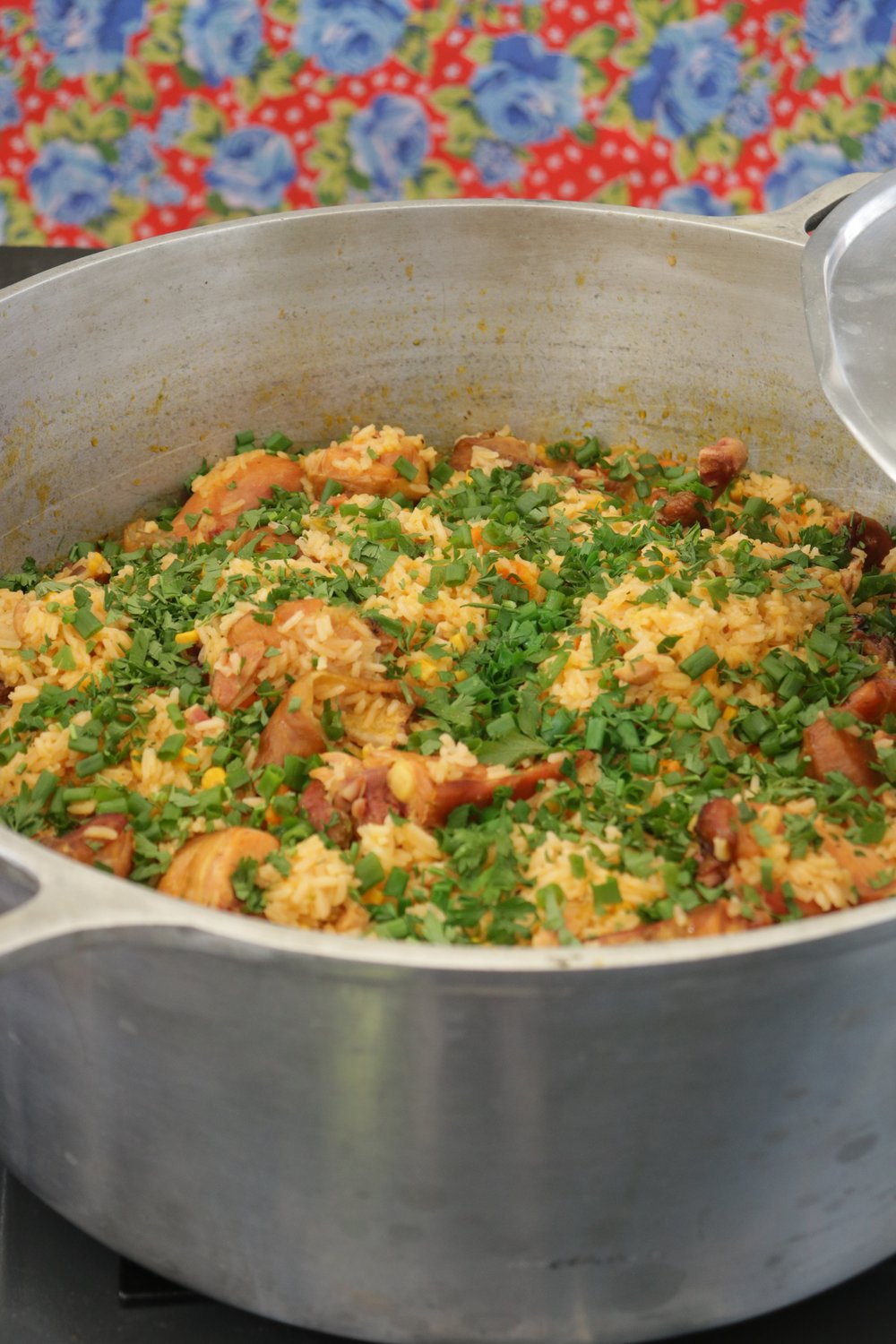 galinhada acompanhados por saladas e preparados com ingredientes que celebram o
