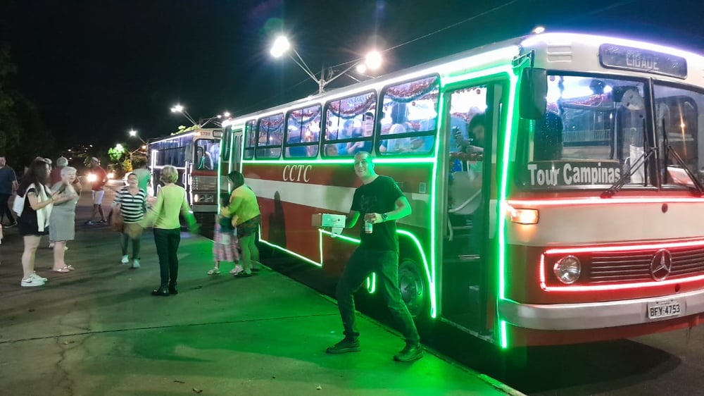 Embarque neste passeio encantado, em um dos ícones mais queridos de Campinas: o ônibus histórico da CCTC, que fez parte do transporte público da cidade nas décadas de 1970 e 1980. Agora, com uma decoração especial, repleta de luzes cintilantes e elementos natalinos, ele te leva a um passeio nostálgico pelas ruas e avenidas iluminadas de Campinas, mostrando os cenários mais encantadores da cidade nesta época do ano.