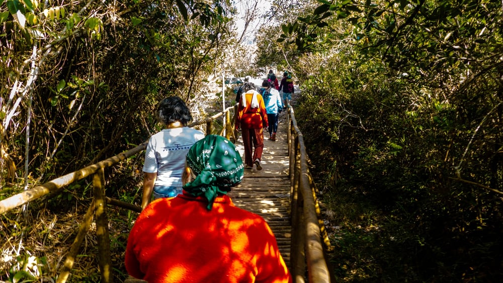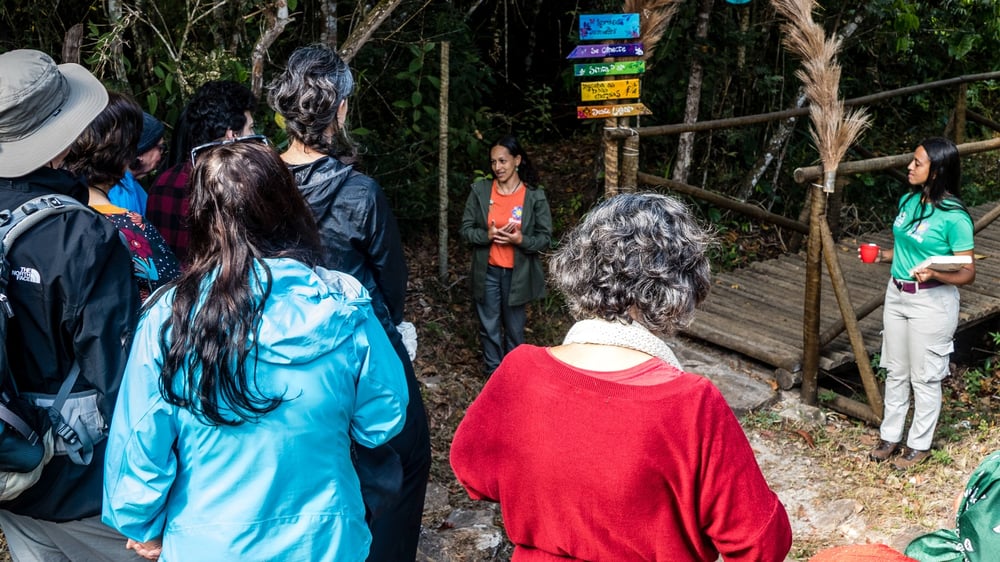 De lá, seguimos pelo encantador Caminho do Sensível, uma trilha leve e contemplativa que nos leva até o Parque Natural Municipal Alto do Rio do Tanque, onde a natureza nos recebe em sua plenitude.