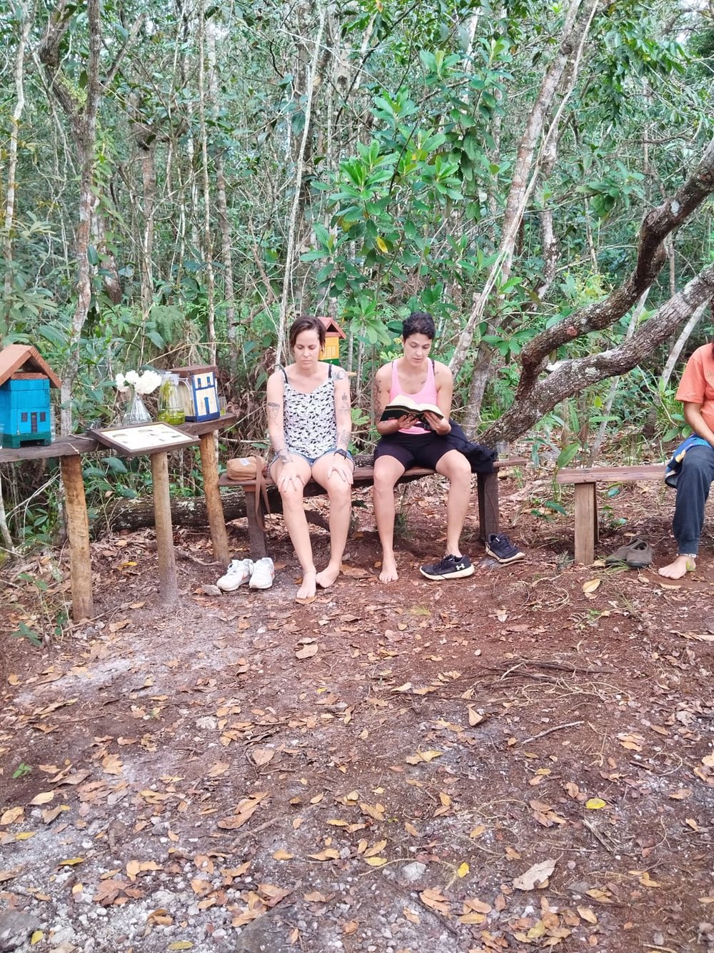 No coração do meliponário, cercados pela delicadeza das abelhas sem ferrão, participamos de uma roda de Biblioterapia – o cuidado de si através da literatura. Neste espaço, palavras, reflexões e partilhas se transformam em bálsamos para a alma, promovendo autoconhecimento, leveza e inspiração.