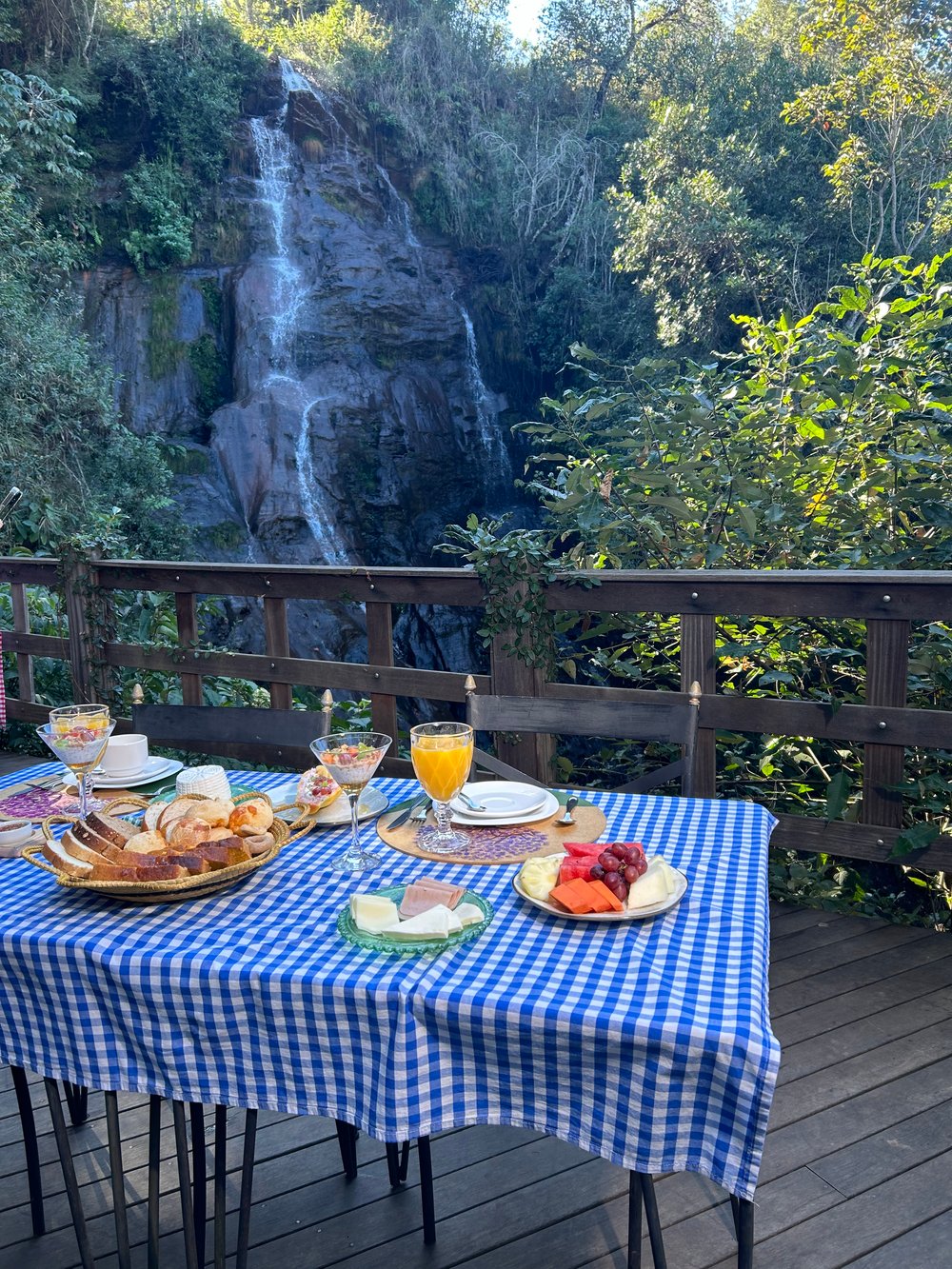 CAFÉ DA MANHÃ À BEIRA DA CACHOEIRA.